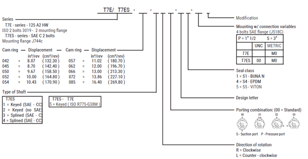 Vane pump replacements for Parker Denison T7E series. Send or confirm your model code and contact us for a quote.